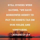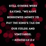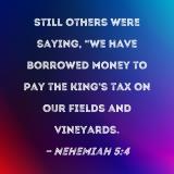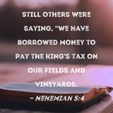 Still others were saying, "We have borrowed money to pay the king's tax on our fields and vineyards.