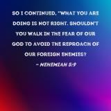 So I continued, "What you are doing is not right. Shouldn't you walk in the fear of our God to avoid the reproach of our foreign enemies?