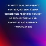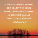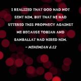 I realized that God had not sent him, but that he had uttered this prophecy against me because Tobiah and Sanballat had hired him.