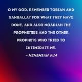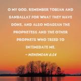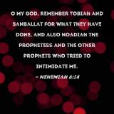 O my God, remember Tobiah and Sanballat for what they have done, and also Noadiah the prophetess and the other prophets who tried to intimidate me.