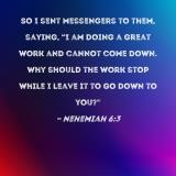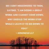 So I sent messengers to them, saying, "I am doing a great work and cannot come down. Why should the work stop while I leave it to go down to you?"