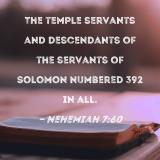 The temple servants and descendants of the servants of Solomon numbered 392 in all.