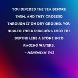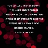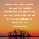 You divided the sea before them, and they crossed through it on dry ground. You hurled their pursuers into the depths like a stone into raging waters.