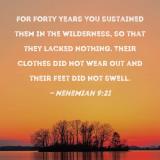For forty years You sustained them in the wilderness, so that they lacked nothing. Their clothes did not wear out and their feet did not swell.