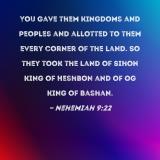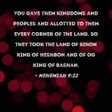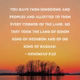 You gave them kingdoms and peoples and allotted to them every corner of the land. So they took the land of Sihon king of Heshbon and of Og king of Bashan.