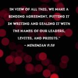 In view of all this, we make a binding agreement, putting it in writing and sealing it with the names of our leaders, Levites, and priests."