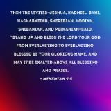 Pictures and Artwork Then the Levites--Jeshua, Kadmiel, Bani, Hashabneiah, Sherebiah, Hodiah, Shebaniah, and Pethahiah--said, "Stand up and bless the LORD your God from everlasting to everlasting: Blessed be Your glorious name, and may it be exalted above all blessing and praise. |