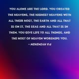 You alone are the LORD. You created the heavens, the highest heavens with all their host, the earth and all that is on it, the seas and all that is in them. You give life to all things, and the host of heaven worships You.