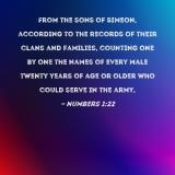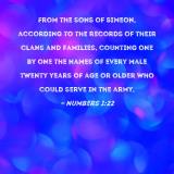 From the sons of Simeon, according to the records of their clans and families, counting one by one the names of every male twenty years of age or older who could serve in the army,