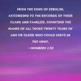 From the sons of Zebulun, according to the records of their clans and families, counting the names of all those twenty years of age or older who could serve in the army,