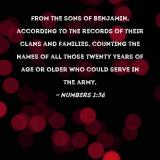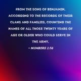 From the sons of Benjamin, according to the records of their clans and families, counting the names of all those twenty years of age or older who could serve in the army,