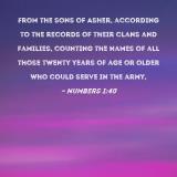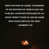 From the sons of Asher, according to the records of their clans and families, counting the names of all those twenty years of age or older who could serve in the army,