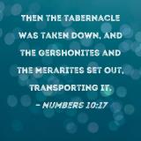 Then the tabernacle was taken down, and the Gershonites and the Merarites set out, transporting it.