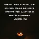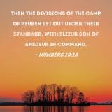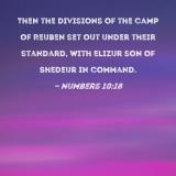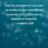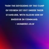 Then the divisions of the camp of Reuben set out under their standard, with Elizur son of Shedeur in command.