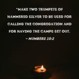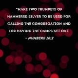 "Make two trumpets of hammered silver to be used for calling the congregation and for having the camps set out.