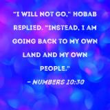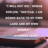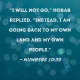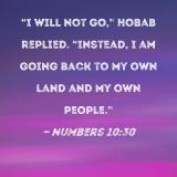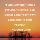 "I will not go," Hobab replied. "Instead, I am going back to my own land and my own people."