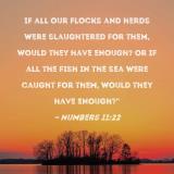 If all our flocks and herds were slaughtered for them, would they have enough? Or if all the fish in the sea were caught for them, would they have enough?"