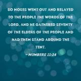 So Moses went out and relayed to the people the words of the LORD, and he gathered seventy of the elders of the people and had them stand around the tent.
