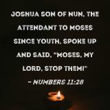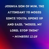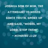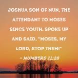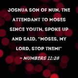 Joshua son of Nun, the attendant to Moses since youth, spoke up and said, "Moses, my lord, stop them!"