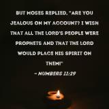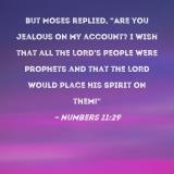 But Moses replied, "Are you jealous on my account? I wish that all the LORD's people were prophets and that the LORD would place His Spirit on them!"