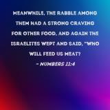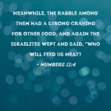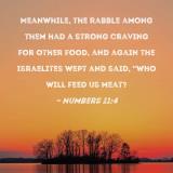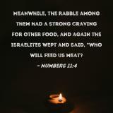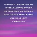 Meanwhile, the rabble among them had a strong craving for other food, and again the Israelites wept and said, "Who will feed us meat?