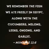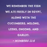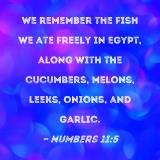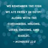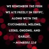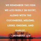 We remember the fish we ate freely in Egypt, along with the cucumbers, melons, leeks, onions, and garlic.