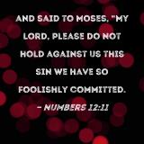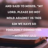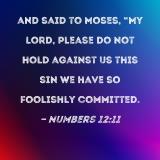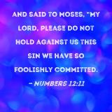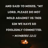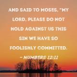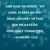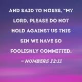 and said to Moses, "My lord, please do not hold against us this sin we have so foolishly committed.
