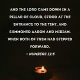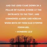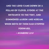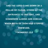 and the LORD came down in a pillar of cloud, stood at the entrance to the Tent, and summoned Aaron and Miriam. When both of them had stepped forward,
