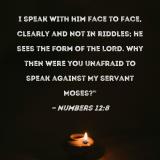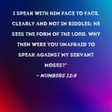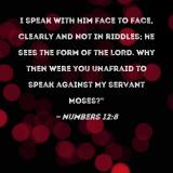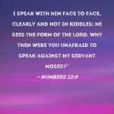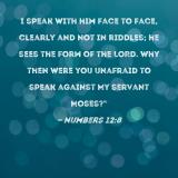 I speak with him face to face, clearly and not in riddles; he sees the form of the LORD. Why then were you unafraid to speak against My servant Moses?"