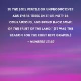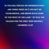 Is the soil fertile or unproductive? Are there trees in it or not? Be courageous, and bring back some of the fruit of the land." (It was the season for the first ripe grapes.)