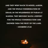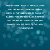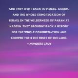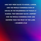 and they went back to Moses, Aaron, and the whole congregation of Israel in the Wilderness of Paran at Kadesh. They brought back a report for the whole congregation and showed them the fruit of the land.