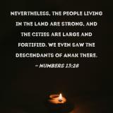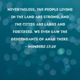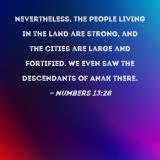 Nevertheless, the people living in the land are strong, and the cities are large and fortified. We even saw the descendants of Anak there.