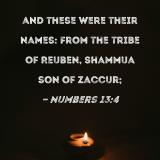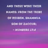 and these were their names: From the tribe of Reuben, Shammua son of Zaccur;