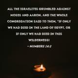 All the Israelites grumbled against Moses and Aaron, and the whole congregation said to them, "If only we had died in the land of Egypt, or if only we had died in this wilderness!