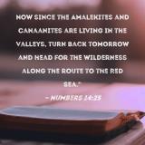 Now since the Amalekites and Canaanites are living in the valleys, turn back tomorrow and head for the wilderness along the route to the Red Sea."