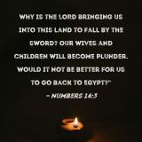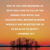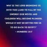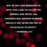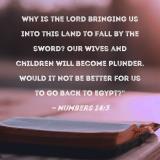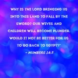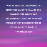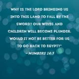 Why is the LORD bringing us into this land to fall by the sword? Our wives and children will become plunder. Would it not be better for us to go back to Egypt?"