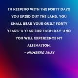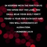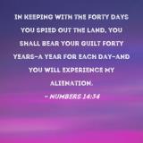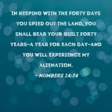 In keeping with the forty days you spied out the land, you shall bear your guilt forty years--a year for each day--and you will experience My alienation.
