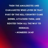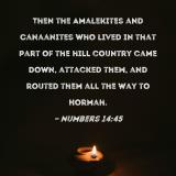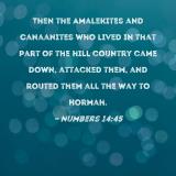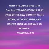 Then the Amalekites and Canaanites who lived in that part of the hill country came down, attacked them, and routed them all the way to Hormah.