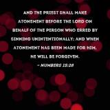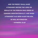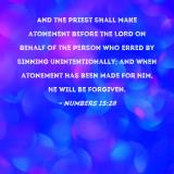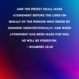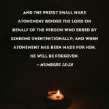And the priest shall make atonement before the LORD on behalf of the person who erred by sinning unintentionally; and when atonement has been made for him, he will be forgiven.
