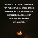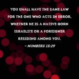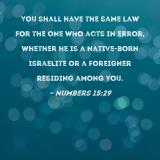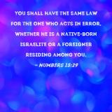 You shall have the same law for the one who acts in error, whether he is a native-born Israelite or a foreigner residing among you.