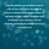 and you present an offering made by fire to the LORD from the herd or flock to produce a pleasing aroma to the LORD--either a burnt offering or a sacrifice, for a special vow or freewill offering or appointed feast--