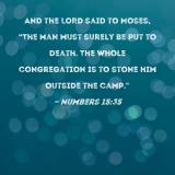 And the LORD said to Moses, "The man must surely be put to death. The whole congregation is to stone him outside the camp."