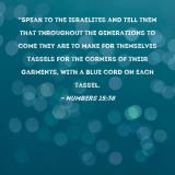 "Speak to the Israelites and tell them that throughout the generations to come they are to make for themselves tassels for the corners of their garments, with a blue cord on each tassel.