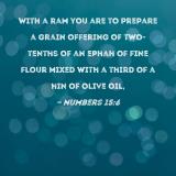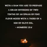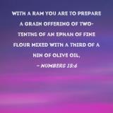 With a ram you are to prepare a grain offering of two-tenths of an ephah of fine flour mixed with a third of a hin of olive oil,