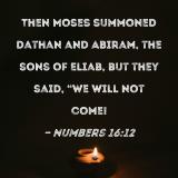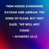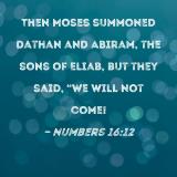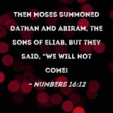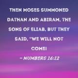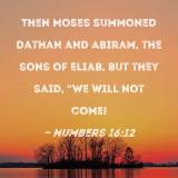 Then Moses summoned Dathan and Abiram, the sons of Eliab, but they said, "We will not come!