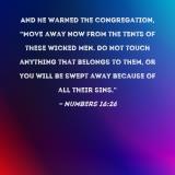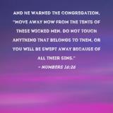 And he warned the congregation, "Move away now from the tents of these wicked men. Do not touch anything that belongs to them, or you will be swept away because of all their sins."