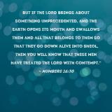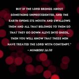 Pictures and Artwork But if the LORD brings about something unprecedented, and the earth opens its mouth and swallows them and all that belongs to them so that they go down alive into Sheol, then you will know that these men have treated the LORD with contempt." |