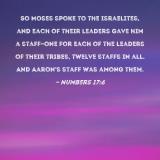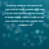 So Moses spoke to the Israelites, and each of their leaders gave him a staff--one for each of the leaders of their tribes, twelve staffs in all. And Aaron's staff was among them.