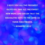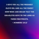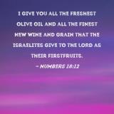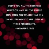 I give you all the freshest olive oil and all the finest new wine and grain that the Israelites give to the LORD as their firstfruits.