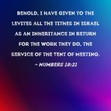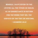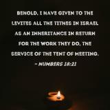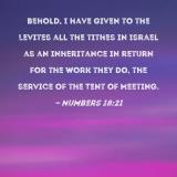 Behold, I have given to the Levites all the tithes in Israel as an inheritance in return for the work they do, the service of the Tent of Meeting.